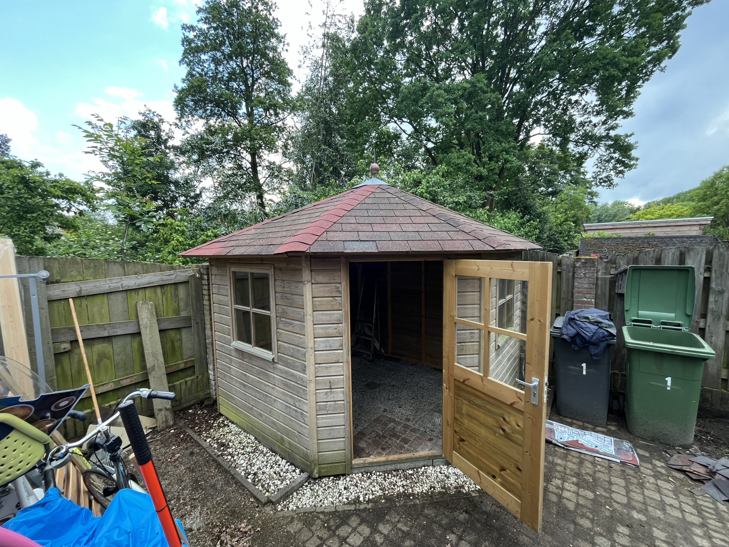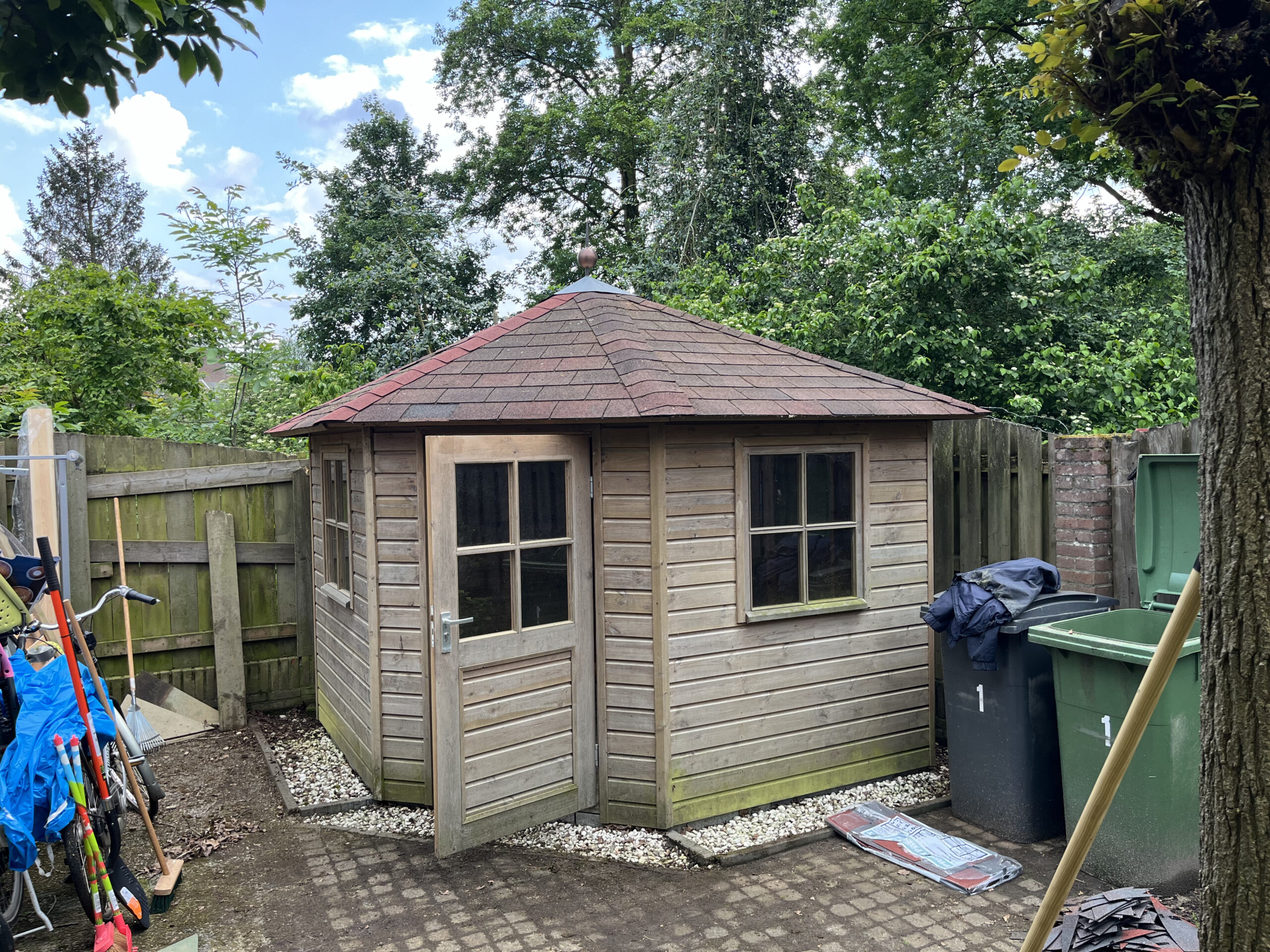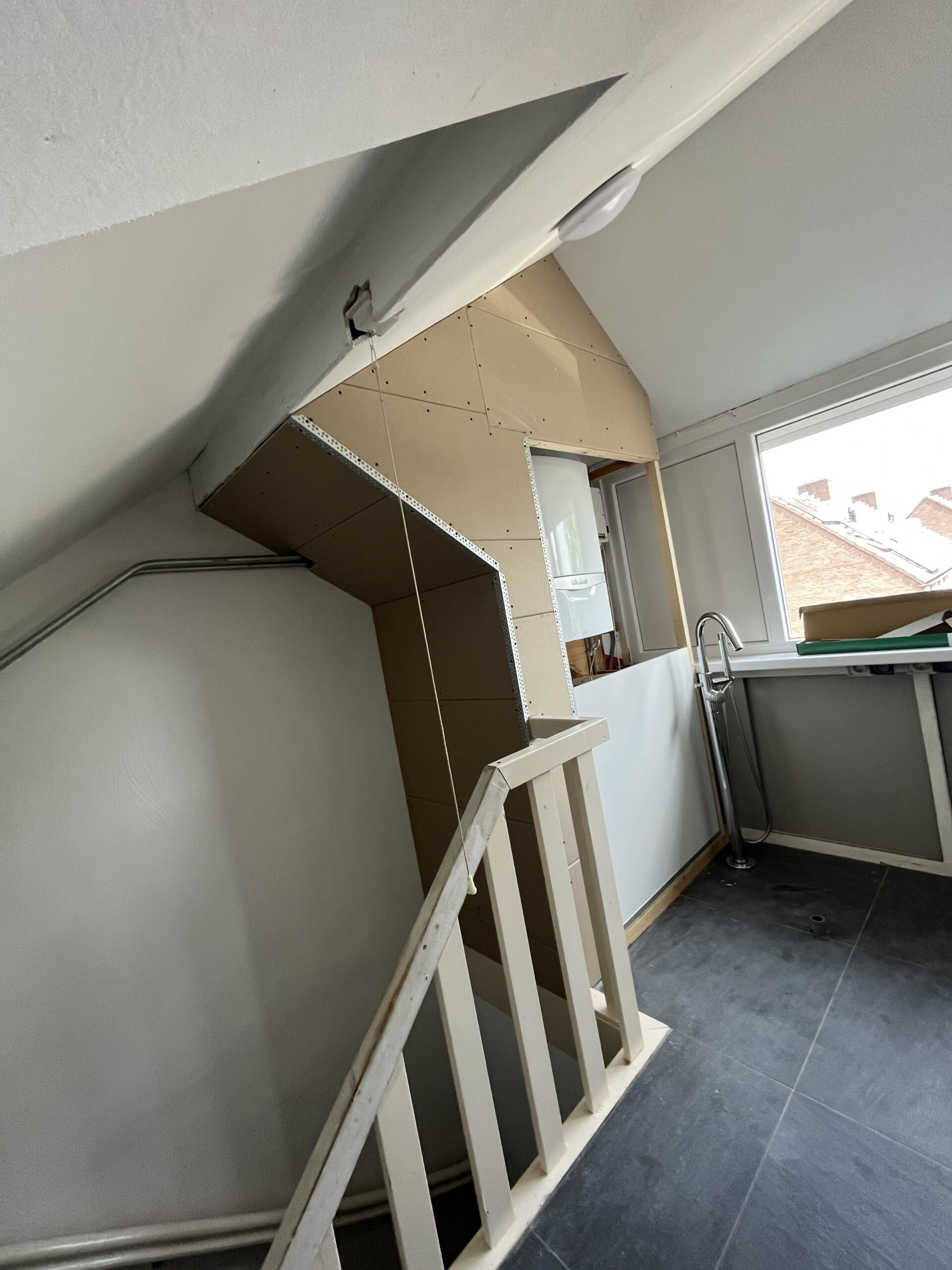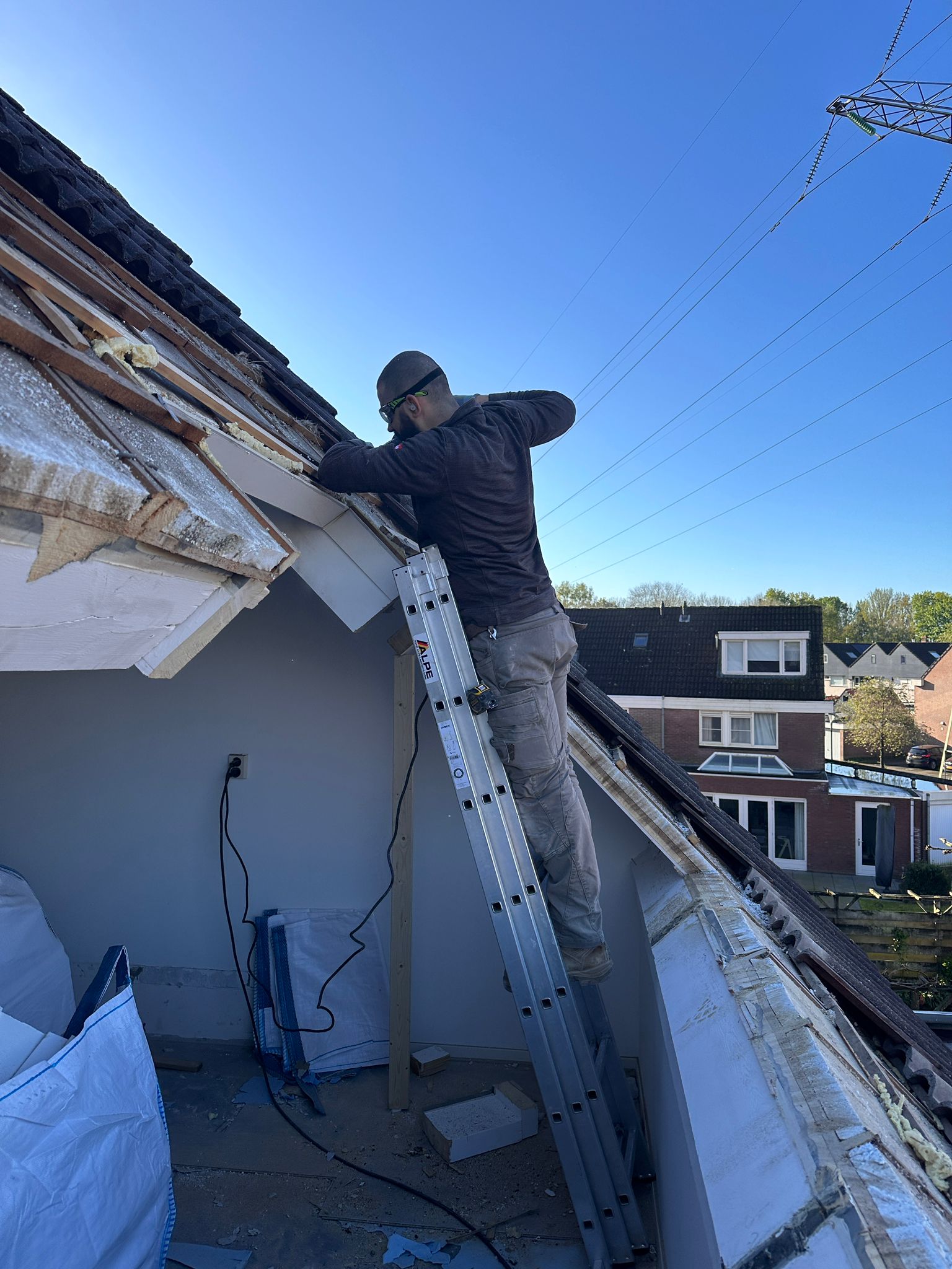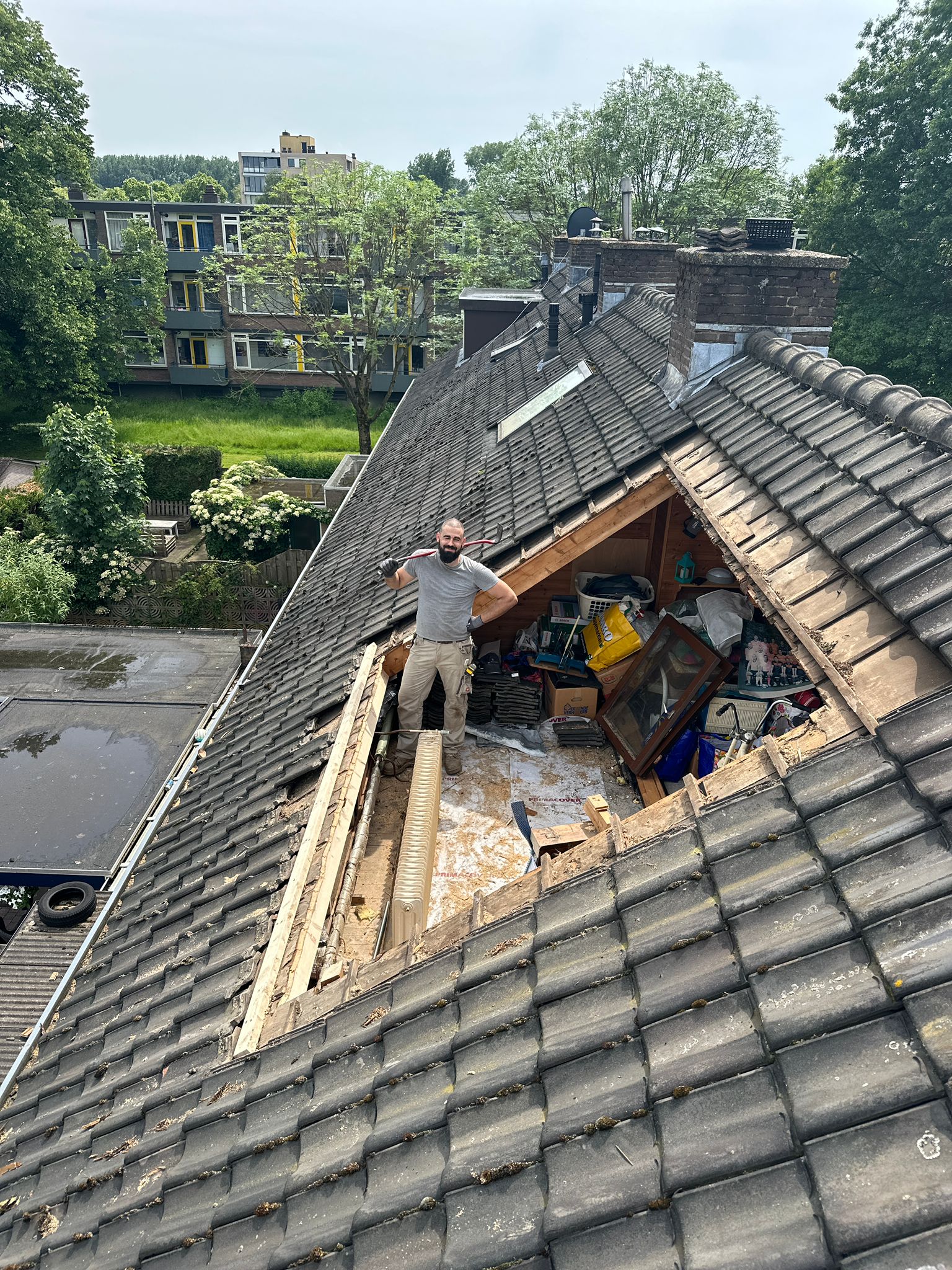 Prefab dormer during work and the result